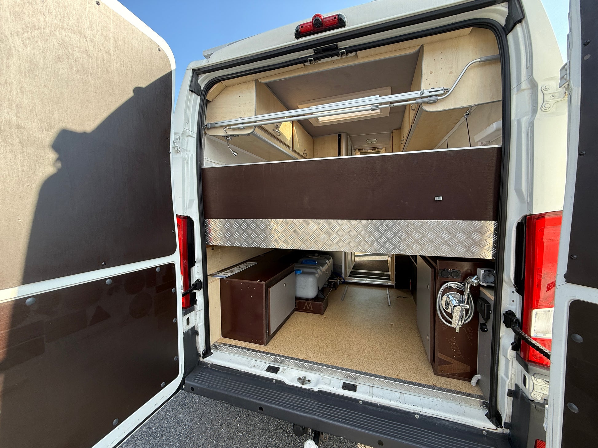 Velká postel v zadní části vozu pro 2-3 osoby