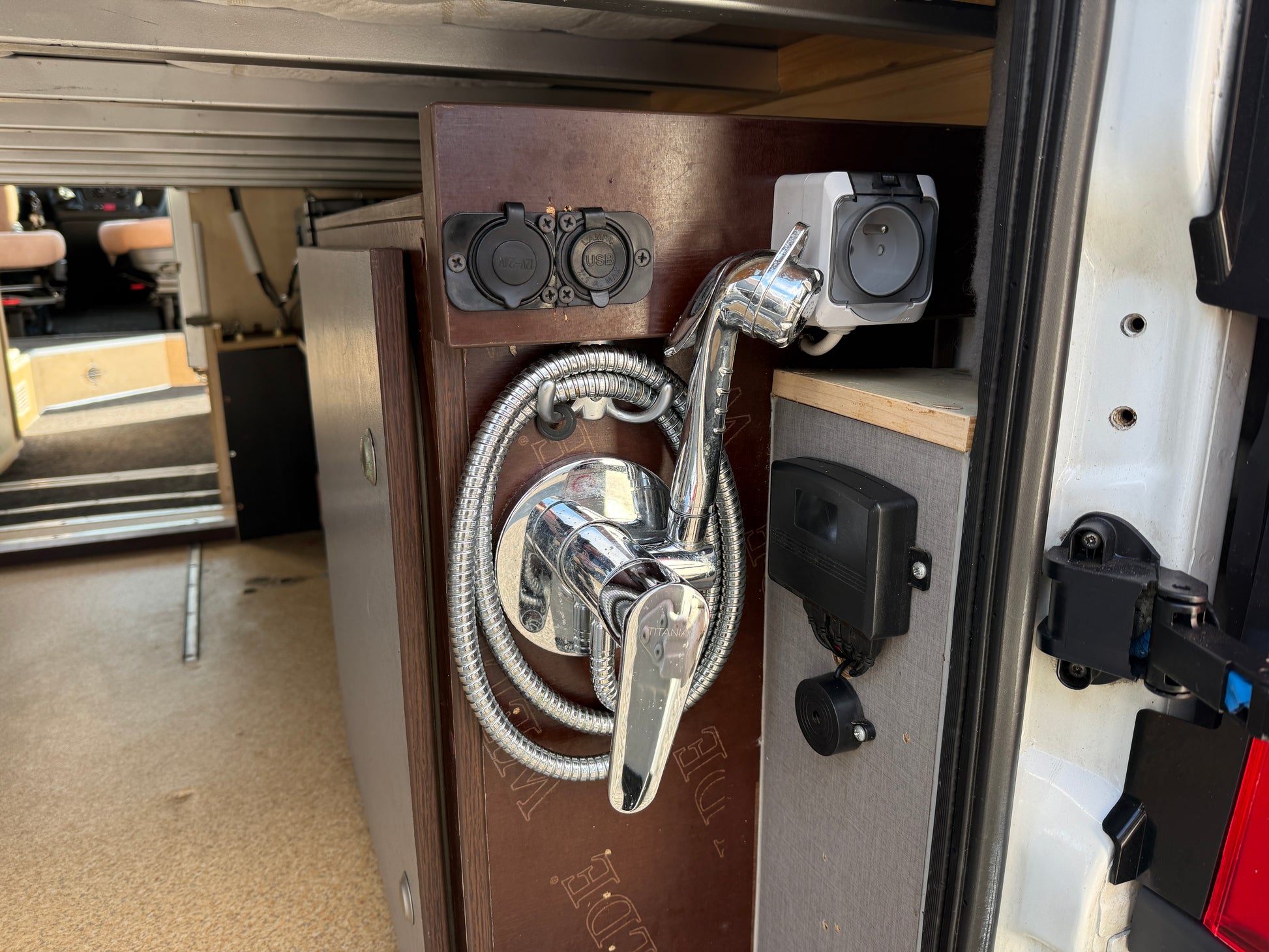 Truma, která zajišťuje ohřev vody na plyn